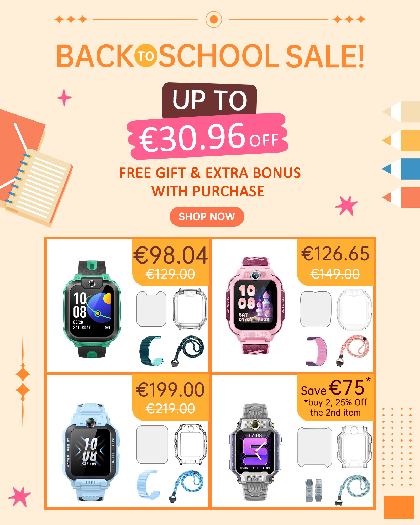 The high-value kids’ smartwatch designed for safety, health, and connection. It features 4G HD video calls, dual cameras, and family chat for easy communication. With IPX8 water resistance, real-time GPS tracking, and 14-day route history, parents can always stay informed. The Z7 also includes heart rate, temperature, and blood oxygen monitoring, plus Class Mode and Stranger Rejection, making it the ideal balance of protection, performance, and fun.