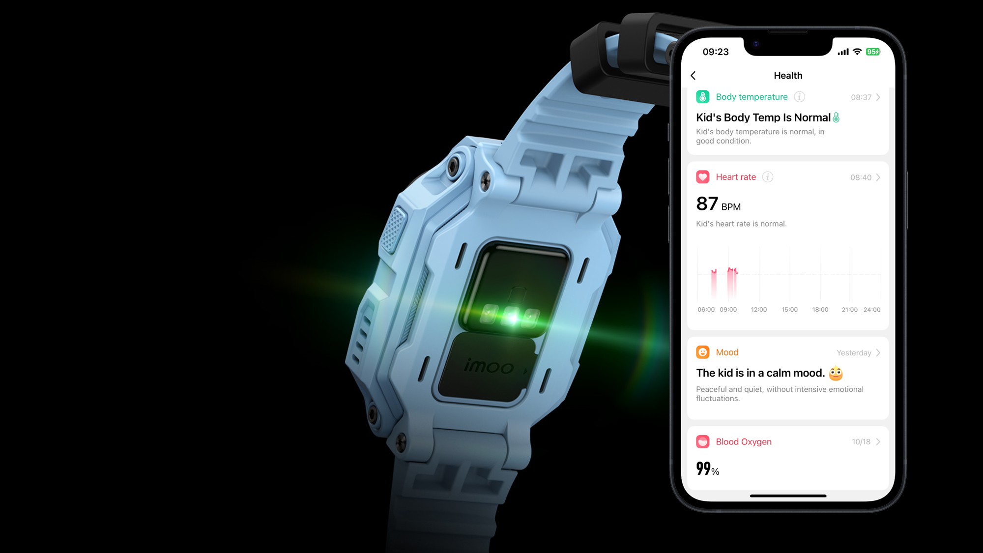 In addition to location tracking, the imoo Z7 offers advanced health monitoring tools that can track your child’s well-being. The watch is equipped with a PPG-based sensor, which monitors various vital signs, including: