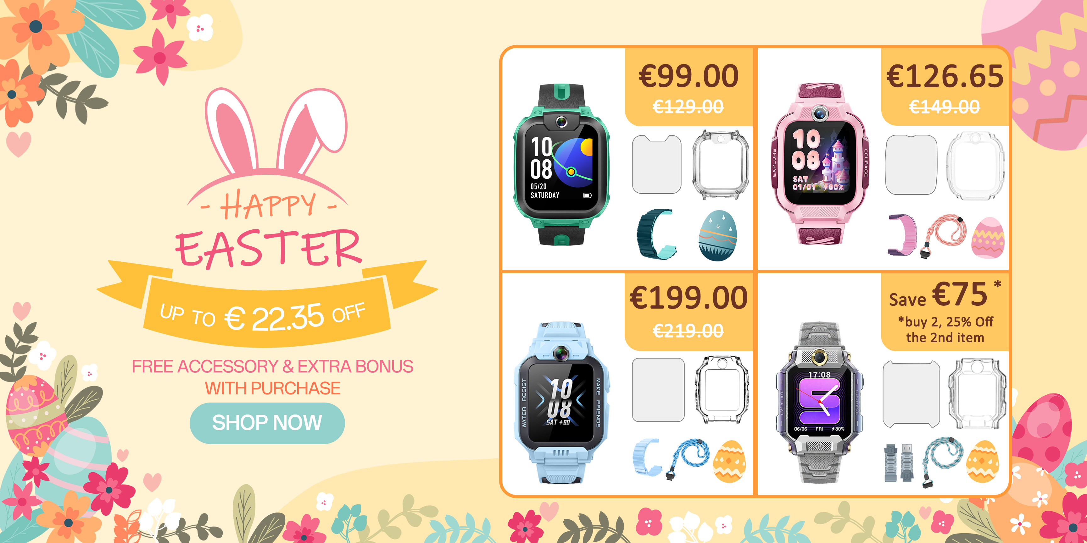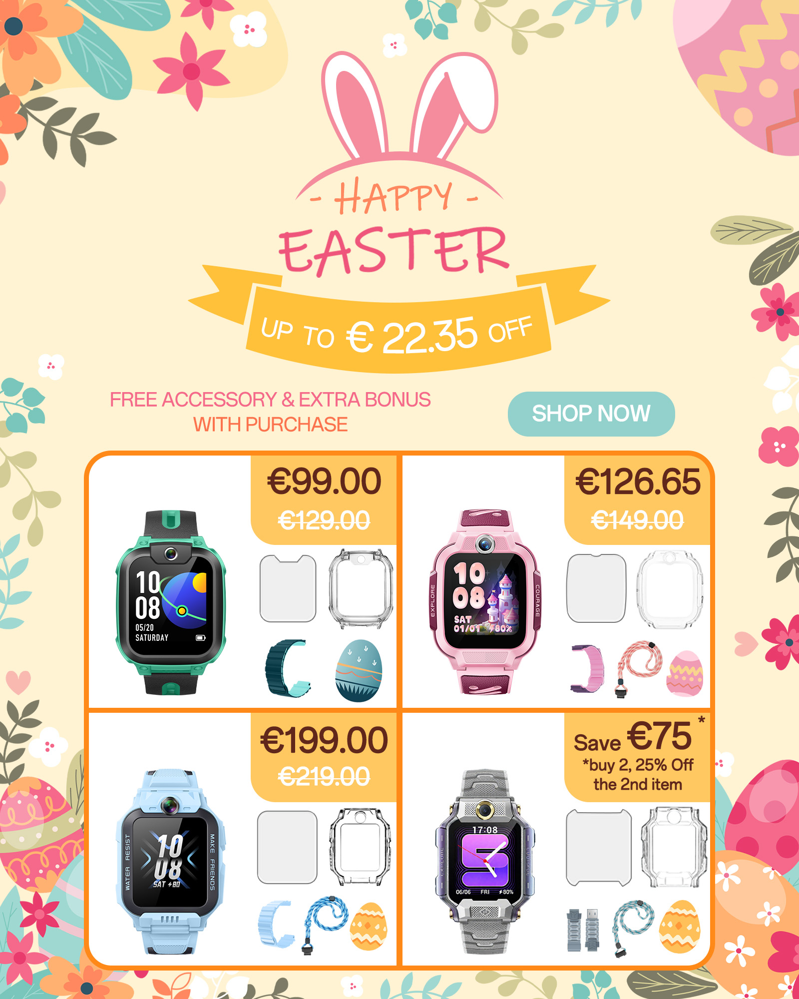 The high-value kids’ smartwatch designed for safety, health, and connection. It features 4G HD video calls, dual cameras, and family chat for easy communication. With IPX8 water resistance, real-time GPS tracking, and 14-day route history, parents can always stay informed. The Z7 also includes heart rate, temperature, and blood oxygen monitoring, plus Class Mode and Stranger Rejection, making it the ideal balance of protection, performance, and fun.