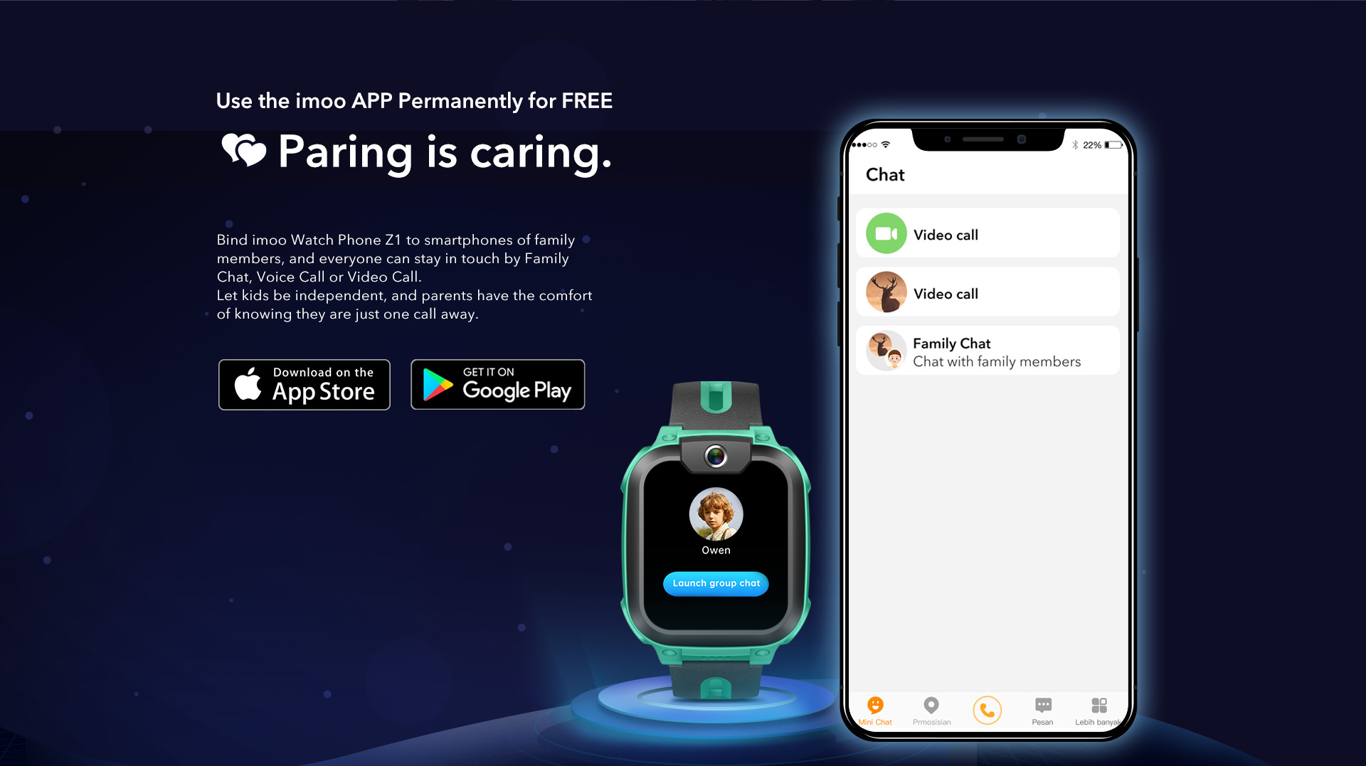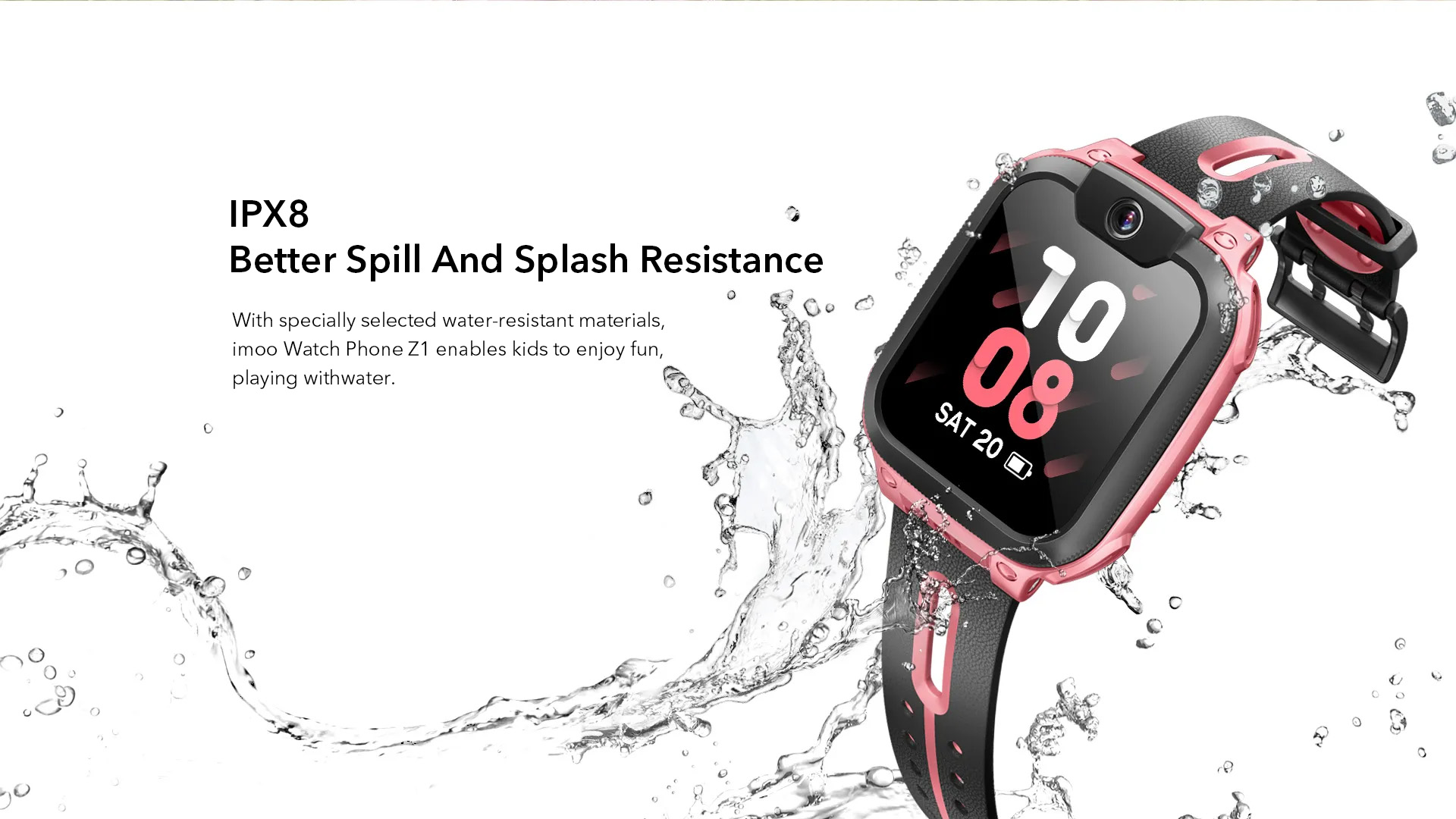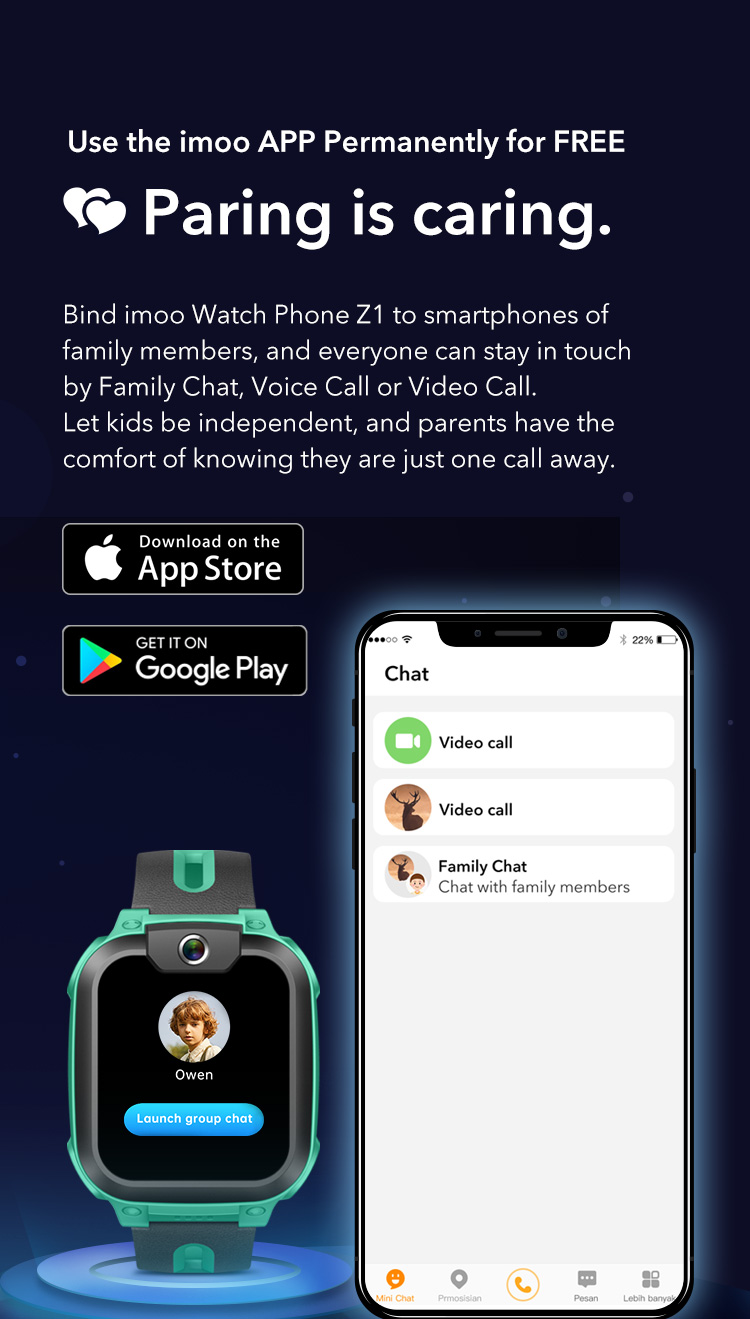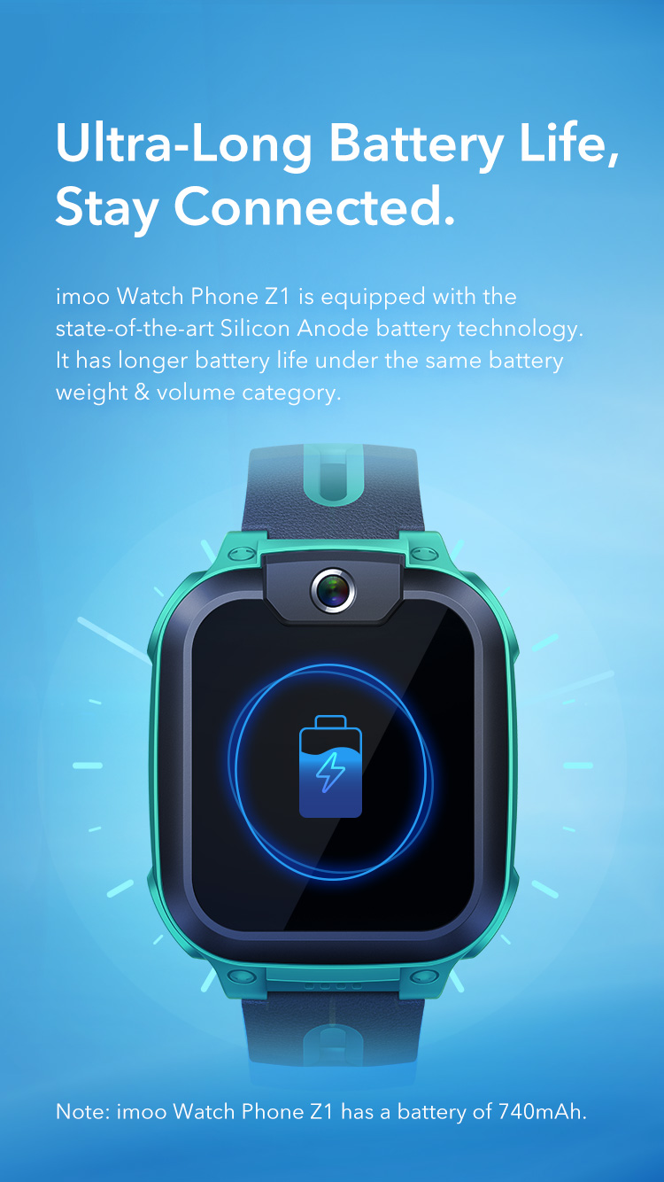 imoo Watch Phone Z1 permite a los padres hacer videollamadas con sus hijos en cualquier momento y en cualquier lugar. El Z1 cuenta con resistencia al agua IPX8, así que los niños no tienen que preocuparse de que derrames o salpicaduras dañen el dispositivo.