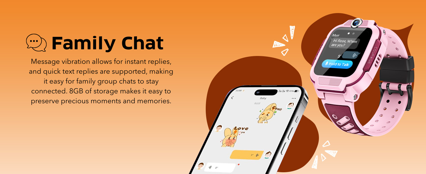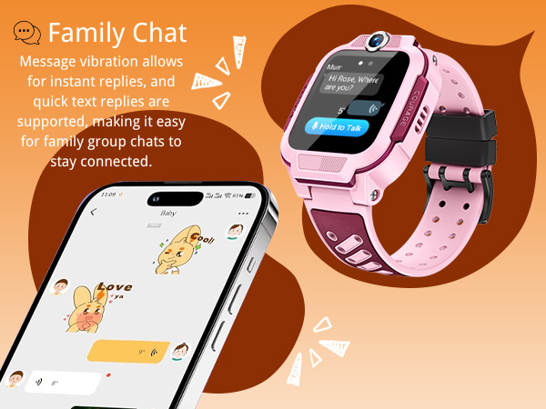 ⌚ HD Video Call & Family Chat – Stay close with your child through clear 2MP wide-angle video calls, instant message vibration, and family group chat. Supports Bluetooth calls and quick text replies for easy communication anytime.