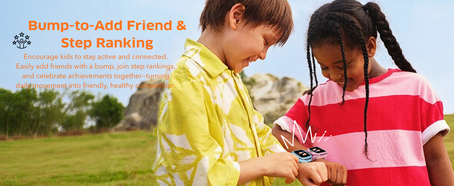 🏃 Bump-to-Add Friend & Step Ranking – Encourage kids to stay active and connected. Easily add friends with a bump, join step rankings, and celebrate achievements together—turning daily movement into friendly, healthy competition.